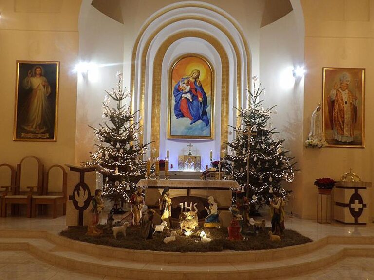W naszej parafii szczególnie poruszającym momentem było uwielbienie przy śpiewie kolędy „Cicha noc”. Podczas tej pieśni zgaszono główne światło w kościele, a jedynym oświetleniem pozostały rozświetlone choinki. Ten prosty, lecz wymowny gest stworzył niezwykle nastrojową atmosferę ciszy, pokoju i refleksji, doskonale oddającą sens narodzin Chrystusa – Światła, które przychodzi w ciemność świata. Chwila ta została zapamiętana przez wielu uczestników jako wyjątkowo piękna i poruszająca.
